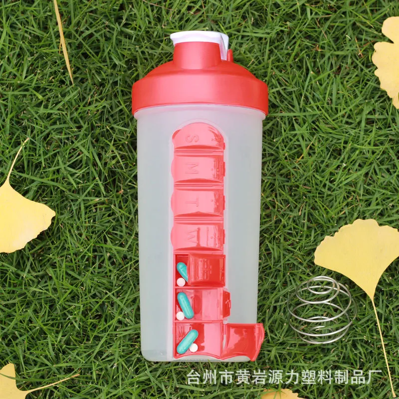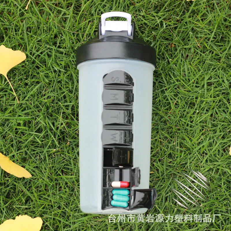 مصدر مصنع الرياضية خلط كوب 600ML شاكر كوب مع تحمل مقبض اللياقة البدنية الرياضية 7 أيام 7 أيام حبوب منع الحمل مربع شاكر كوب