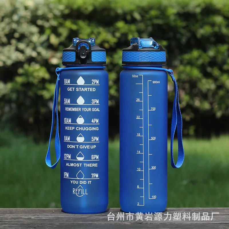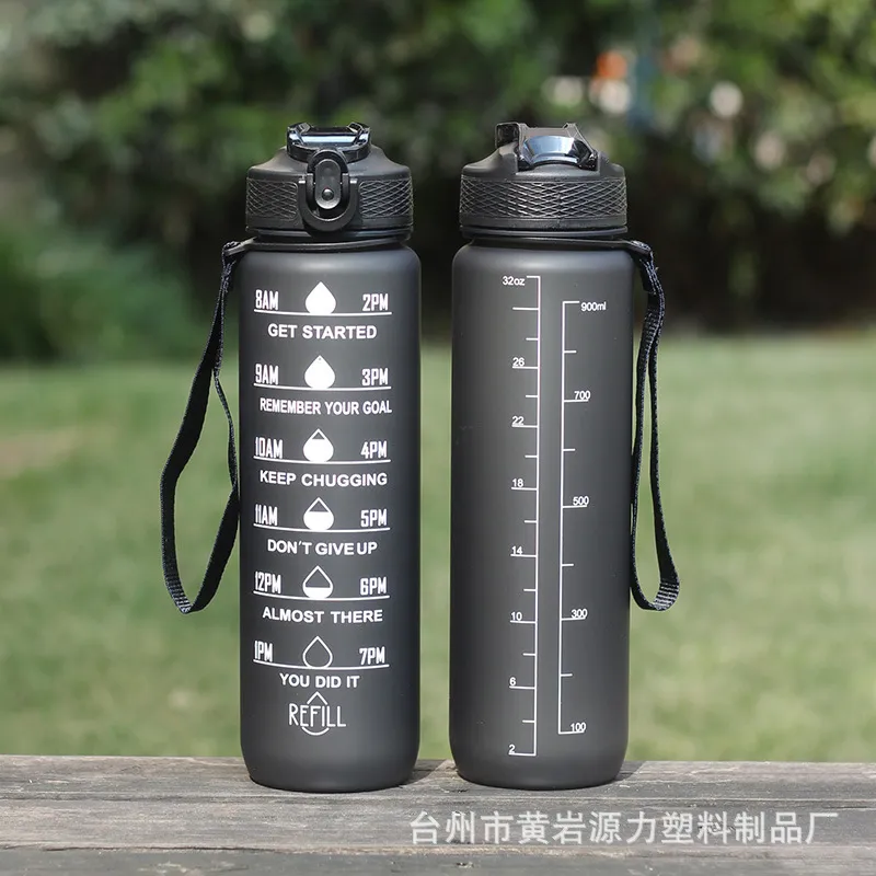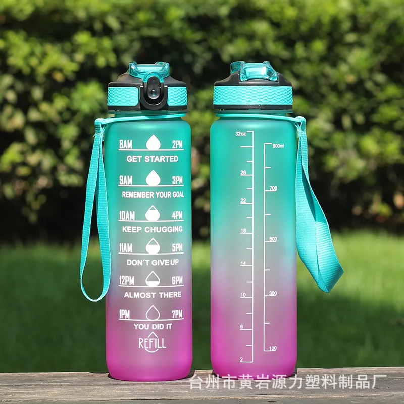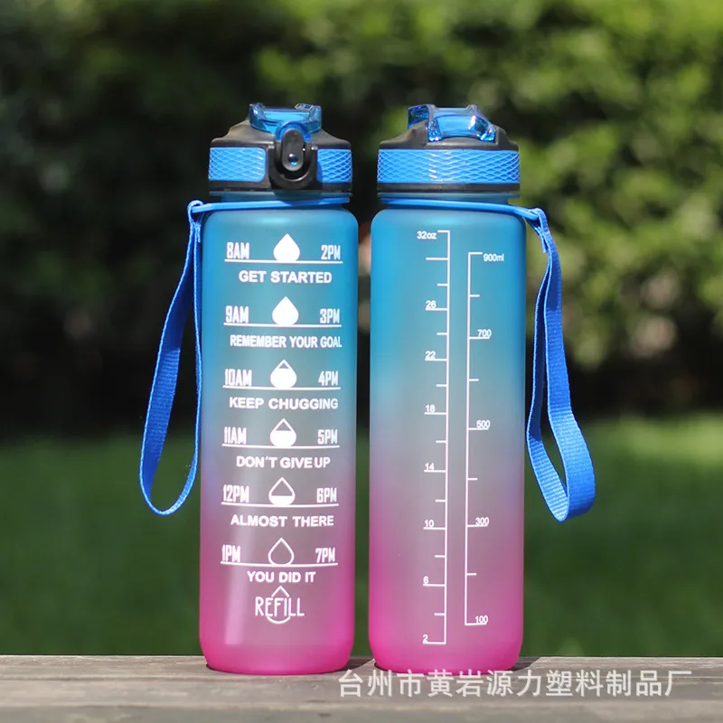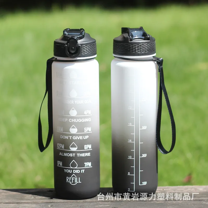 بقعة 1000ML الأمازون TRITAN زجاجة المياه البلاستيكية غطاء المنبثقة مع مقياس القش الرياضة القدح الفضاء القدح