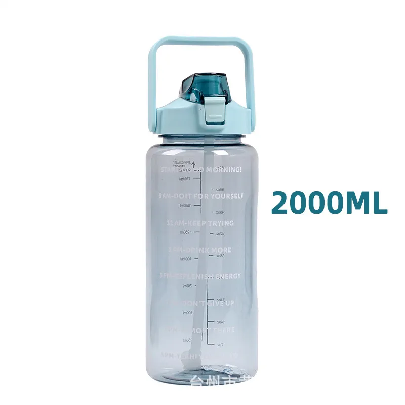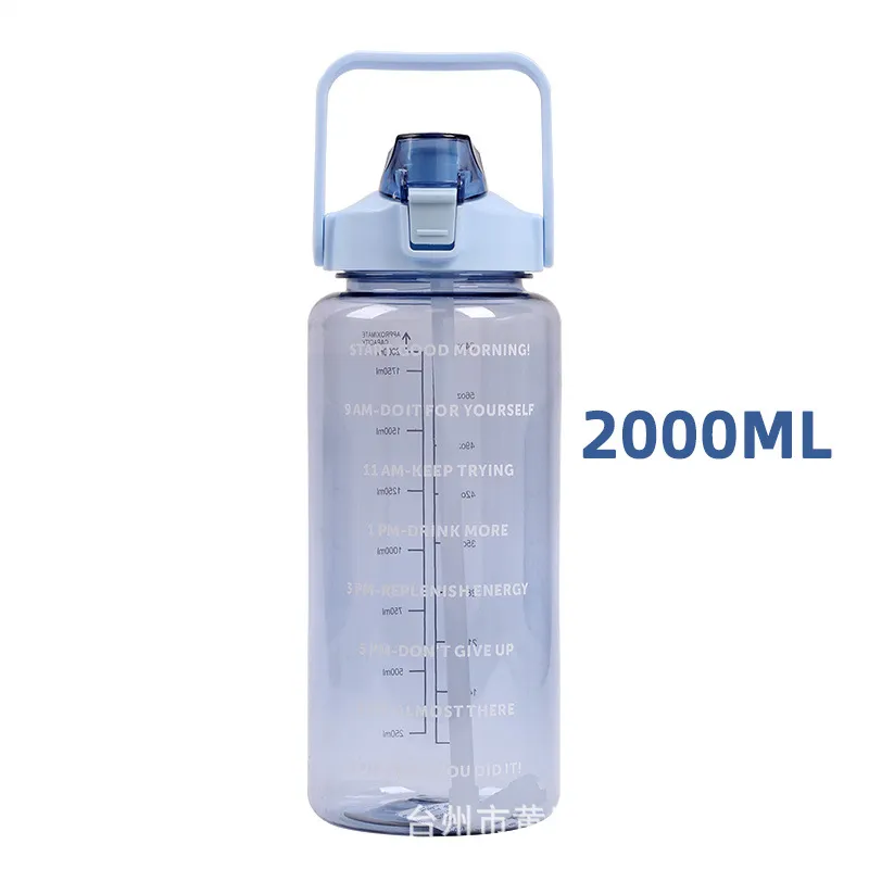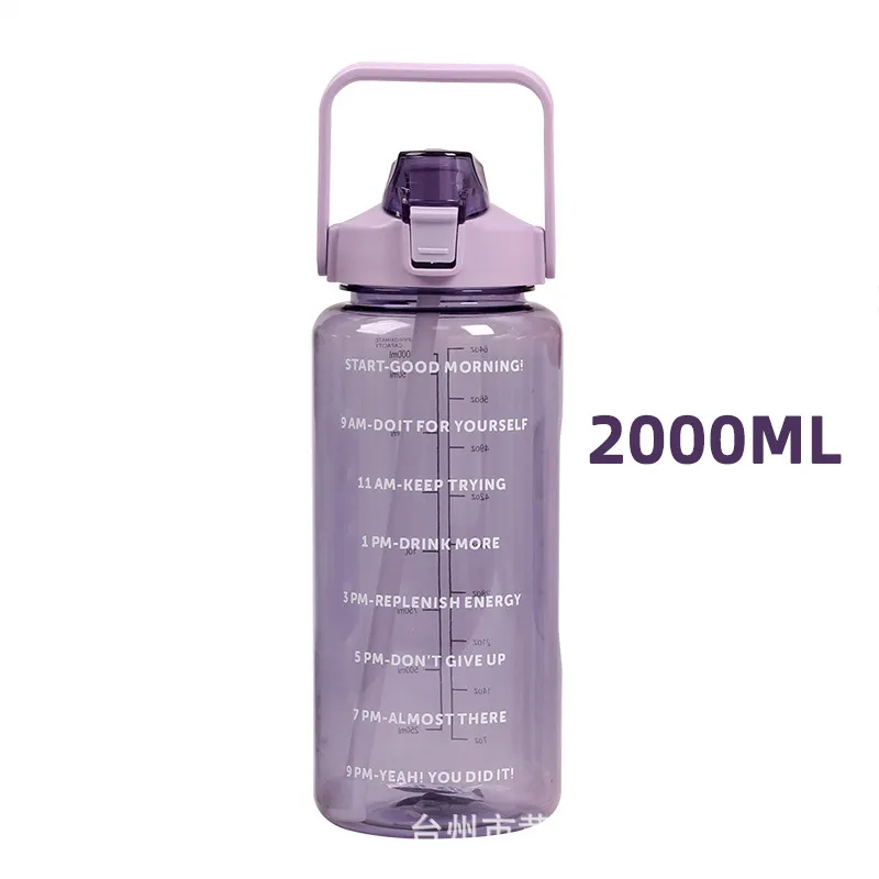 بقعة 2000ml تذكير شرب كوب ماء رياضي بلاستيكي مع زجاجة ماء مقياس كوب مساحة محمولة زجاجة ماء سعة كبيرة